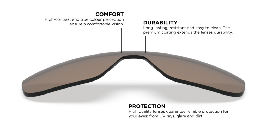 The VIBRANT BROWN photochromic lenses automatically adjusts to the light conditions and are developed to provide a high-contrast visual experience in a wide range of weather conditions. It’s highly durable and impact resistant. The lenses increase depth perception to see more detail: whether bumps on the road and trails or the beautiful surroundings you’re cycling in.